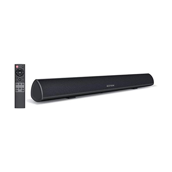 80Watt 34Inch Sound bar, Bestisan Soundbar Bluetooth 5.0 Wireless and Wired Home Theater Speaker (DSP, Bass Adjustable, Optical Cable Included)