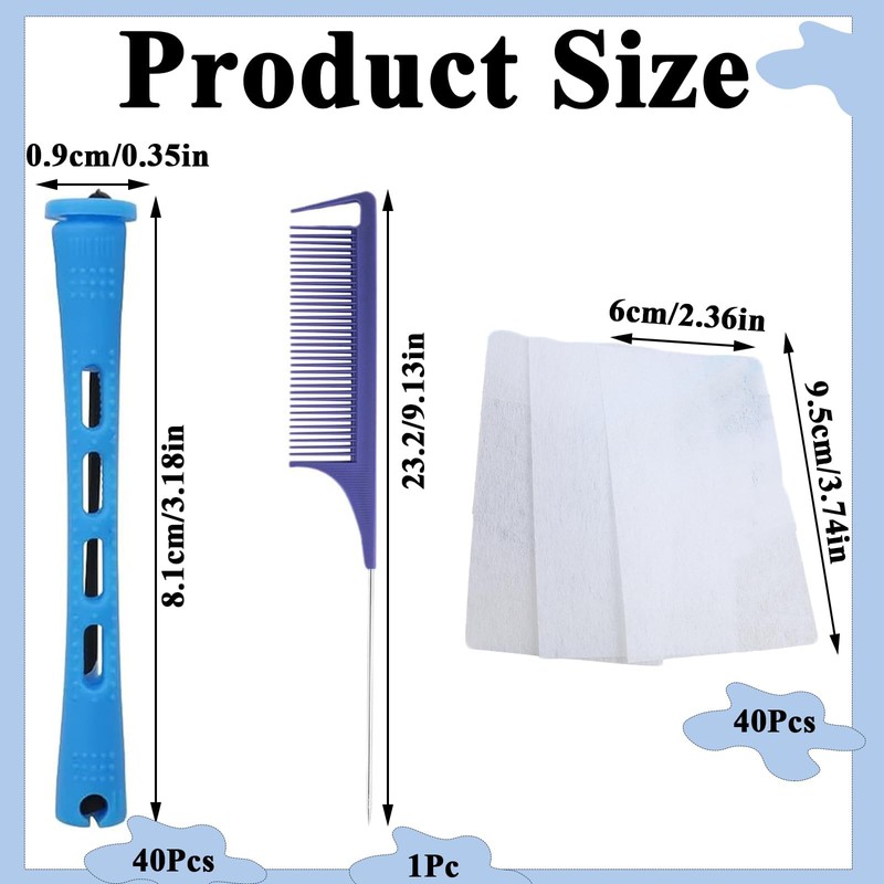 - Haar Roller Set: Unser dauerwellen set komplett enthält 40 mittelgroße blau Lockenwickler (8,2 x 0,9 cm), 40 dauerwelle papier und einen Stielkamm, die in ausreichender Menge vorhanden sind und für eine Vielzahl von Haartypen geeignet sind, um Ihren täglichen Lockenbedarf zu decken.