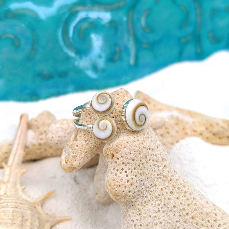 81stgeneration Women's .925 Sterling Silver Three Shiva Eye Shell Ring