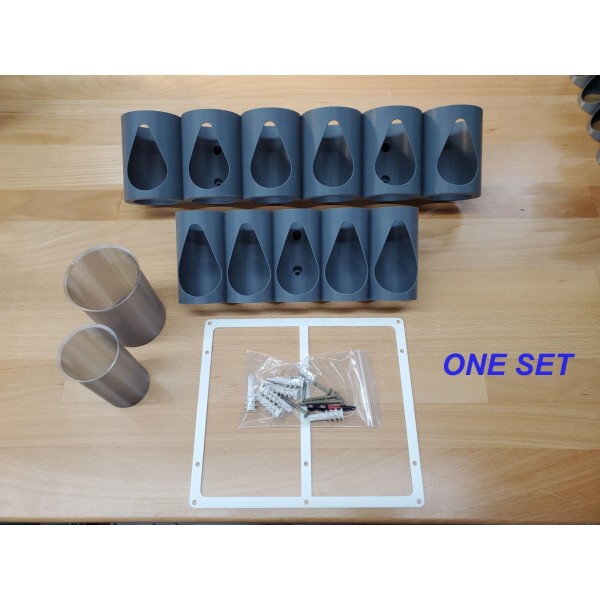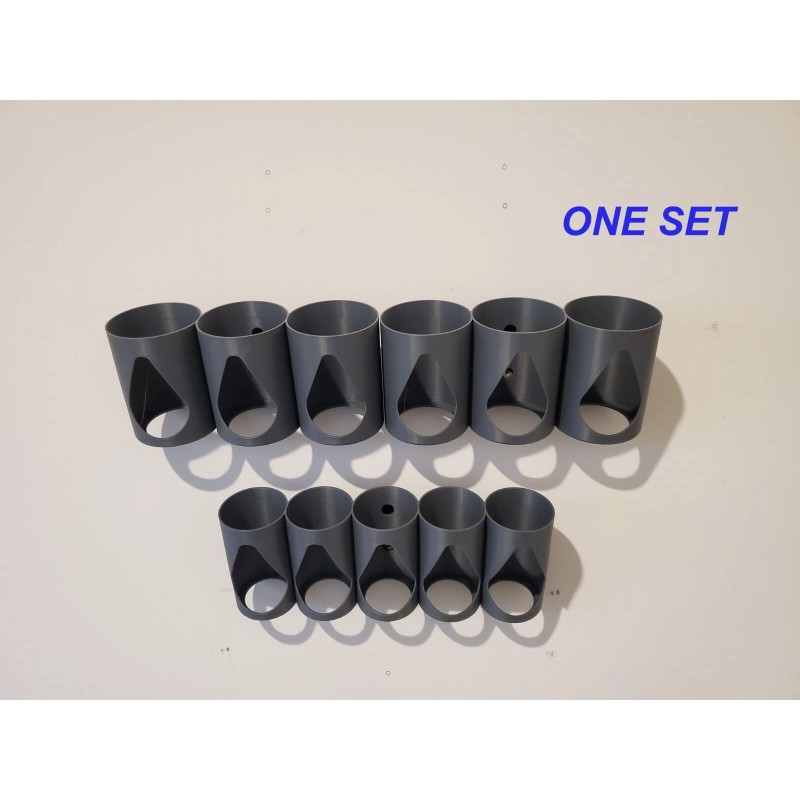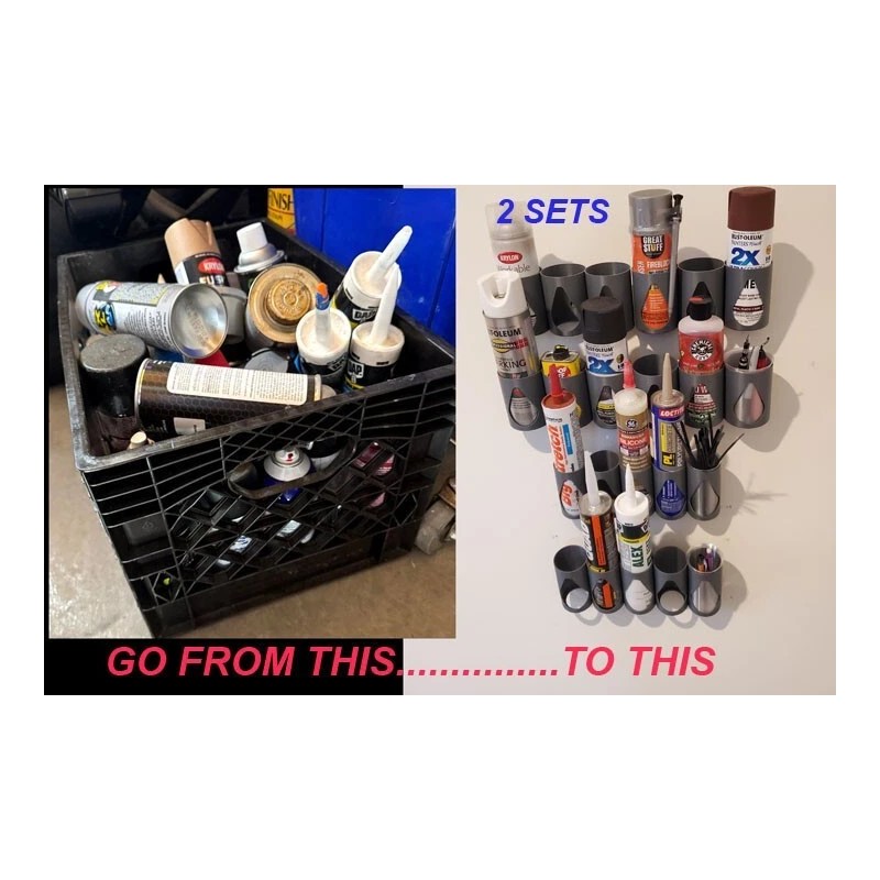 One set of wall mount storage organizers for spray cans, caulk tube, various bottles, tubes, etc.