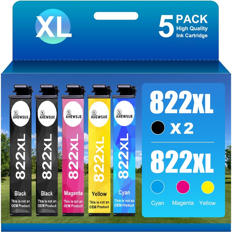 - Upgraded with latest chip: AHEWSUE 822XL 5PACK Remanufactured for Epson 822XL ink cartridges Replacement for Epson 822 ink cartridges