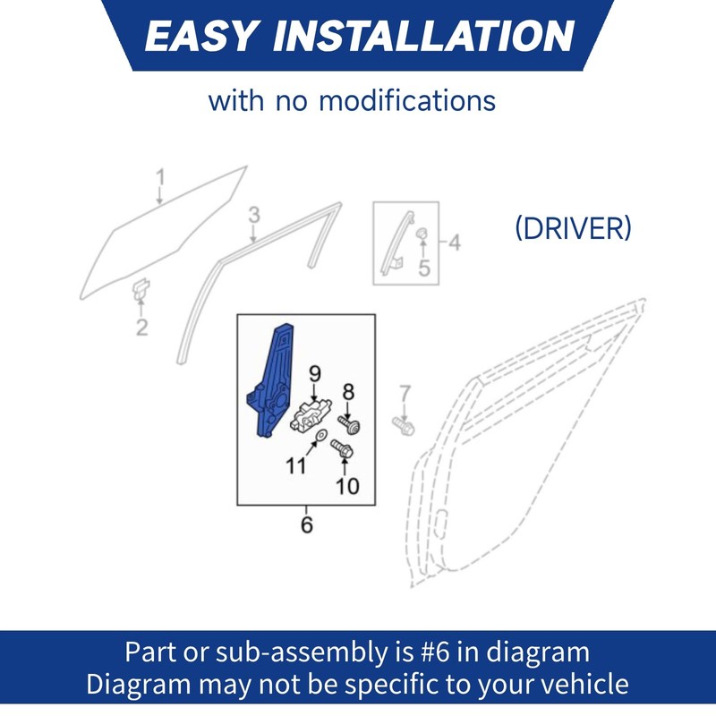 824012V010 Power Window Regulator Replacement for Veloster 2012-2017 - Front Left Driver Side (LH) - Genuine OEM 82401-2V010