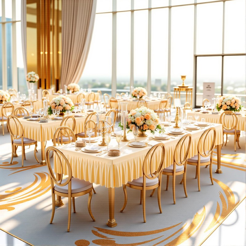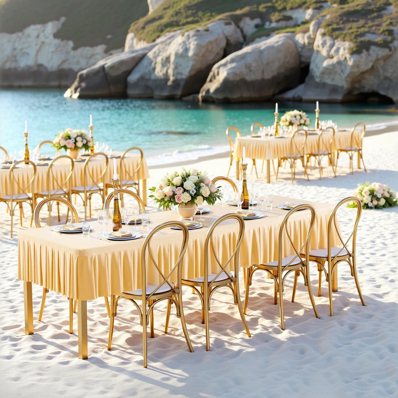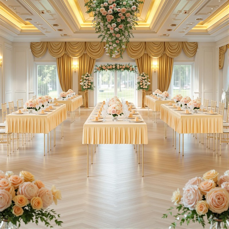 - 【Widely Used Tablecloths Rectangular】This champagne fitted tablecloth is a great choice for both casual and formal events: wedding, baby shower, bridal shower, birthday parties, friendsgiving, trade show, office party, everyday use, family party and celebrations.