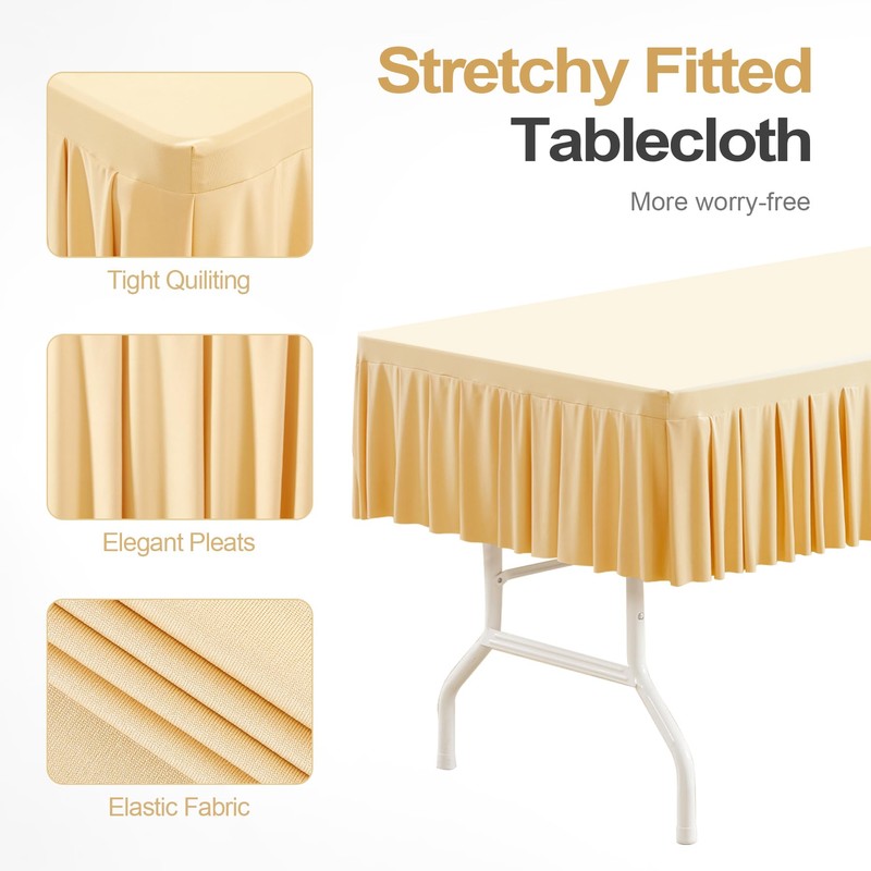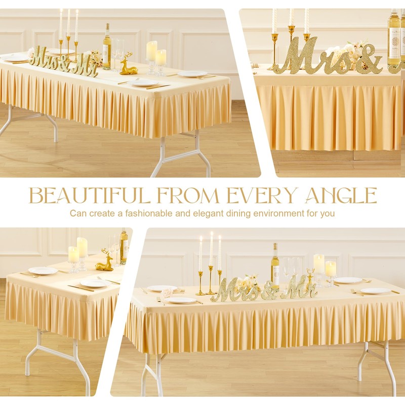 - 【Non-ironing Champagne Spandex Tablecloths】No ironing was required for this tablecloth! Made by high quality milky polyester, our Durable and Reusable table cloth owns high resilience, can rebounds quickly after stretching without wrinkling.