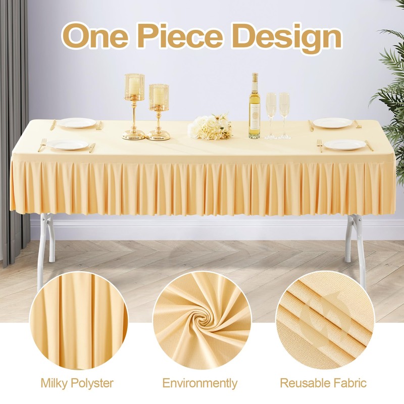 - 【New Style Pleated Tablecloth with Skirt】Say goodbye to the long table skirt that would dragged on the ground! Our one-piece tablecloths are the latest design that not only makes seating easy, but also creates an elegant look.