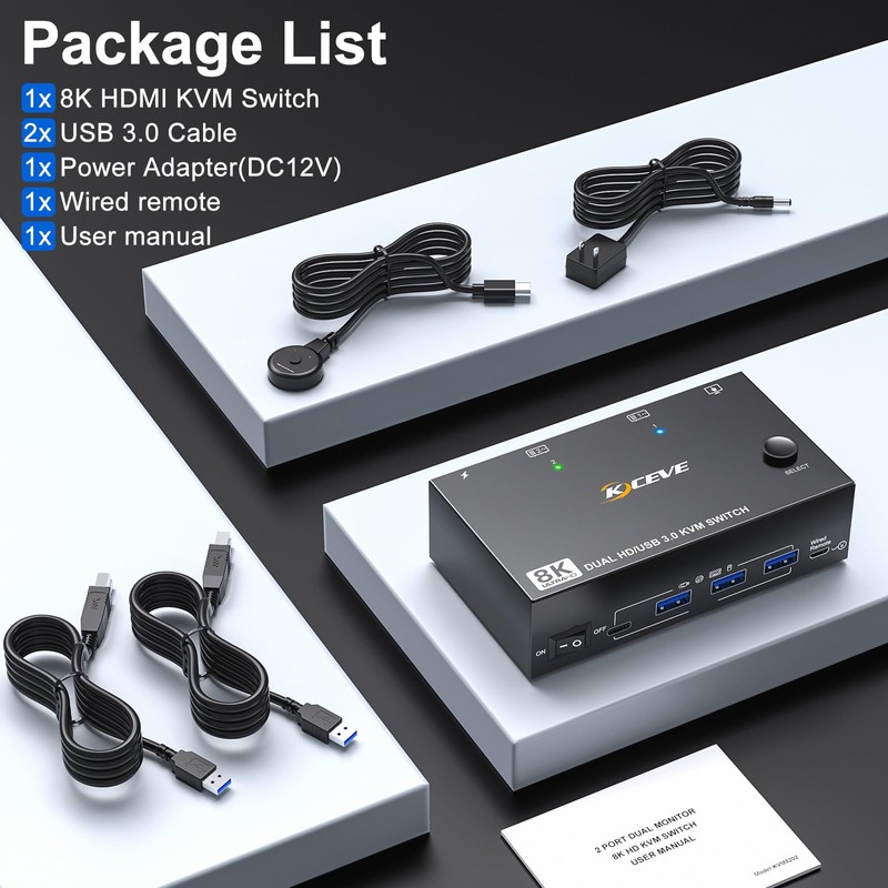 - 【What you will Get】Camgeet provides 1 year warranty and lifetime technical support for this 8K HDMI KVM Switch.𝐏𝐀𝐂𝐊𝐀𝐆𝐄 𝐋𝐈𝐒𝐓:1* 8K HDMI KVM switch; 2*USB 3.0 Cable(1.5M); 1*Wired Remote(1.5M); 1*Power adapter and 1*User Manual.Any problem,pls contact us to solve.