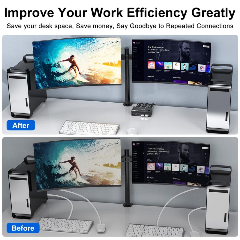 - 【Power Adapter and ON-OFF Switch Designed】The upgraded 12V power adapter makes the 8K HDMI KVM switch work smoother and provides more stable recognition when connecting high-power USB devices. When not in use, just turn off the KVM without unplugging the cables.