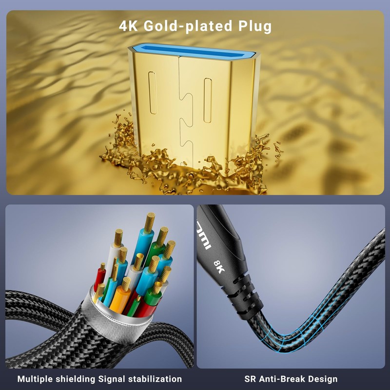 - 48Gbps Stable Transmission:It supports data transfer rates of up to 48Gbps,high-speed transmission without signal loss, Supports dynamic HDR/3D, HDR, Dolby Atmosphere, and eARC, providing excellent images and clear and stimulating surround sound for efficient transmission of movie and video feasts
