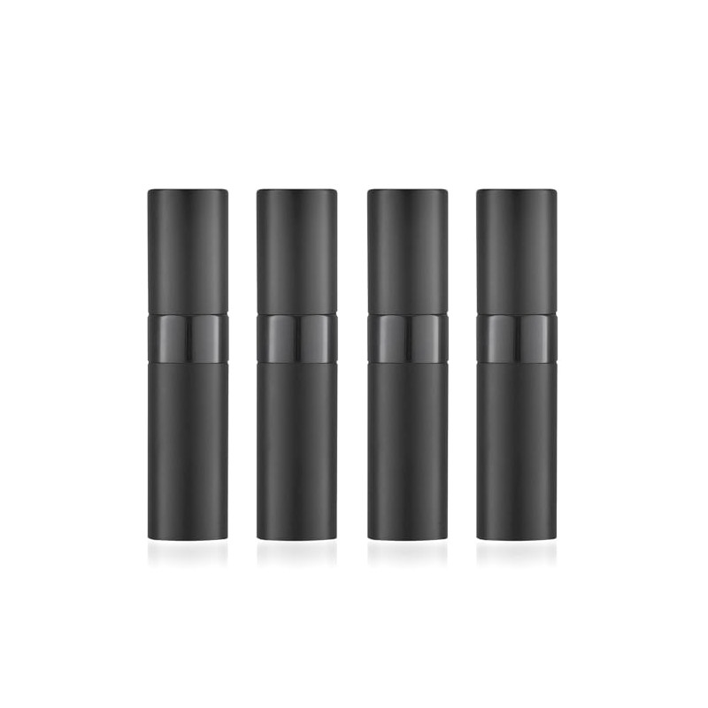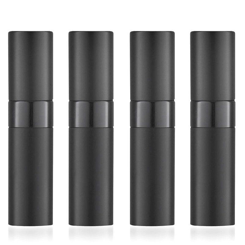 8ml Refillable Perfume Spray Bottles - Travel Atomizer Set with Removable Inner Bottle, Portable Leak Proof Lightweight Sprayer for Fragrances, Essential Oils (Matte Black 4 Pack)