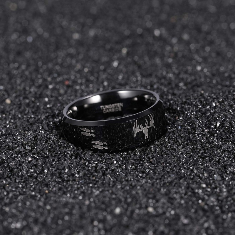 - Design: 8mm wedding rings for men women. black color, deer antler engraved, beveled edges, dome, comfortable