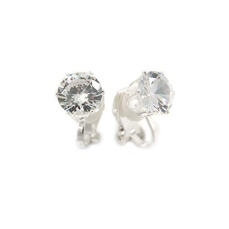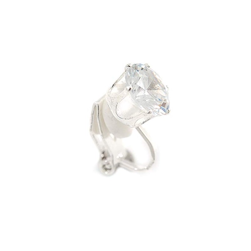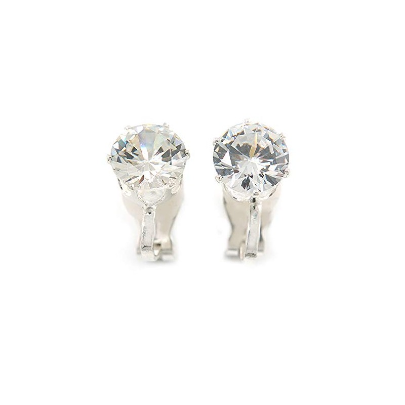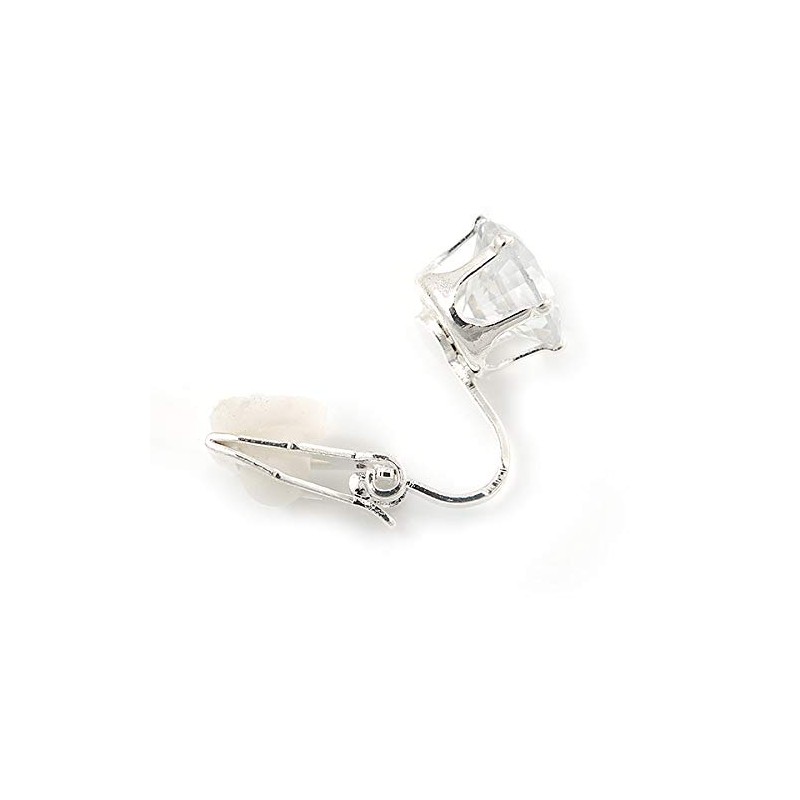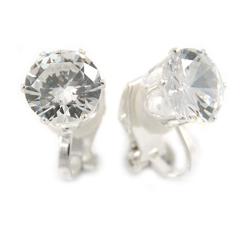 8mm/ Clear Round Cut Cz Clip On Earrings/Silver Tone