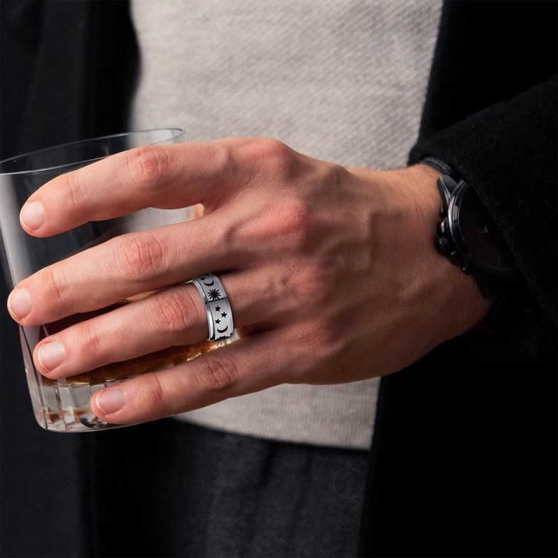 8MM Stainless Steel Spinner Ring for Women Men Sun Moon Stars Spinner Ring for Stress Relieving Men’s Anxiety Ring Band Jewelry Spinny Ring Size 10