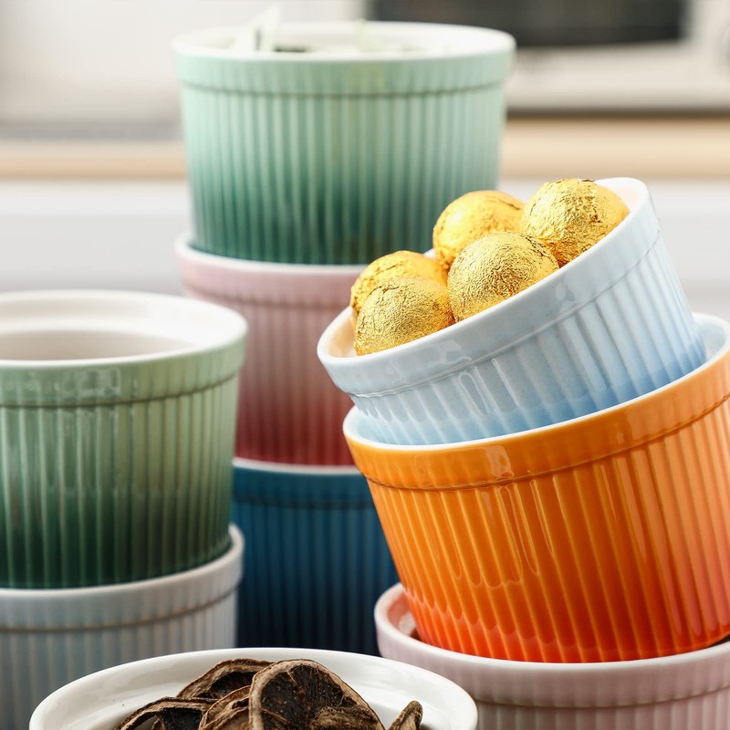 - 【Premium Materials】---This ramekin set is made of high-strength porcelain materials, with greater density and better anti-drop and crack resistance. Oven, Microwave and Dishwasher safe.