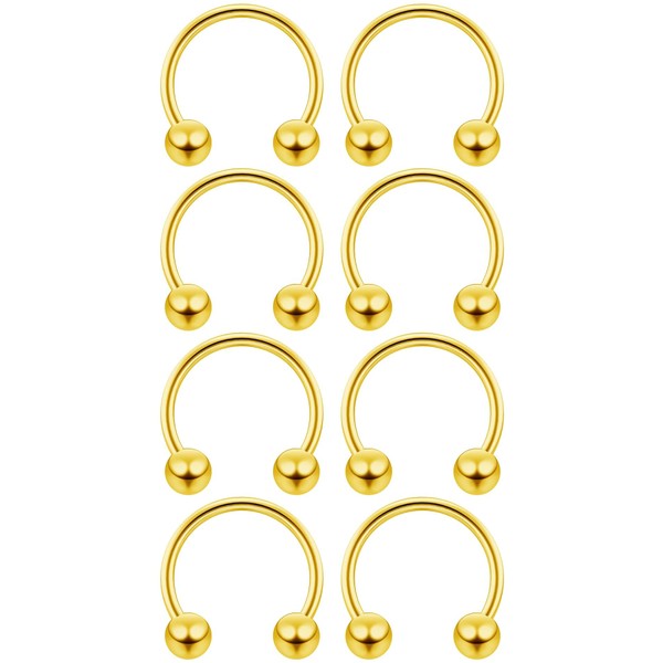 8pc 1mm 18g Gold Surgical Stainless Steel Horseshoe Bar Hoop 3mm Ball Circular Barbells Earrings Cartilage Helix Septum Nose Lip Rings - 8mm
