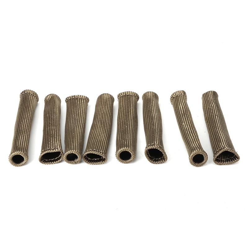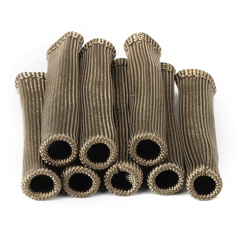 8pcs 2500°F Spark Plug Wire Heat Shield Car Spark Plug Wire Header Warp Boots Sleeve Protector Cover for HEI Ls1 Ls2 Sbc Bbc 350 454 Brown
