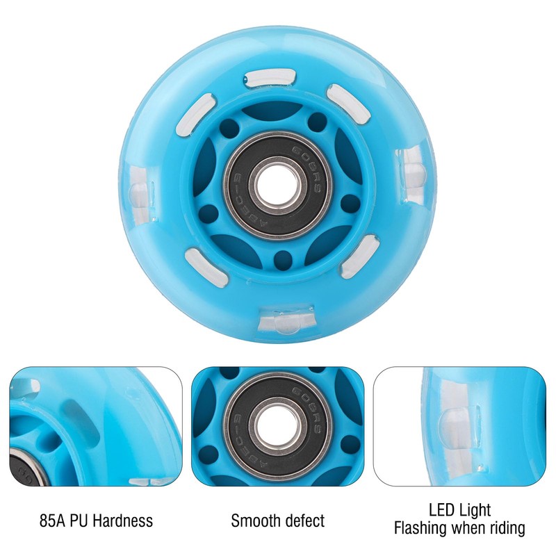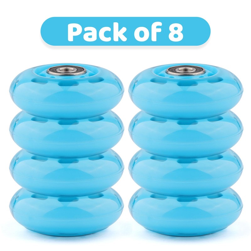 8pcs Inline Skate Wheels Led Light-Up Wheels 64/70/72/76/80mm w/Bushings 85-88A for Kids and Youth Beginners Children's Inline Skates Indoor/Outdoor Use (Blue, 64mm)