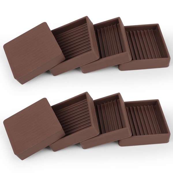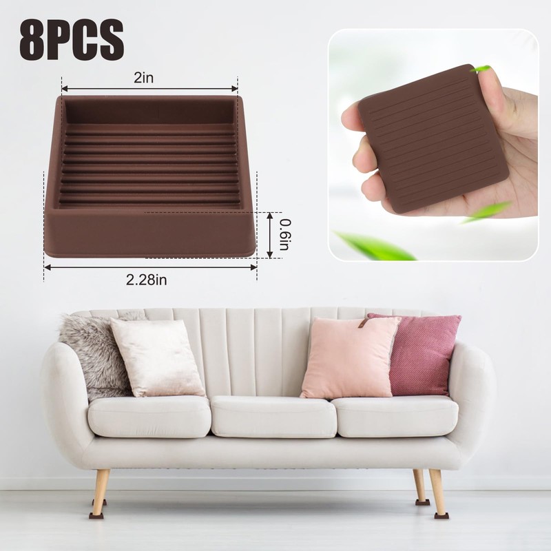 8Pcs Non Slip Furniture Pads, 2" Square Furniture Coasters Cups, Rubber Furniture Pads for Hardwood Floors, Floor Protectors and Stoppers for Bed, Cabinet, Sofa, Chair, Table (Brown)