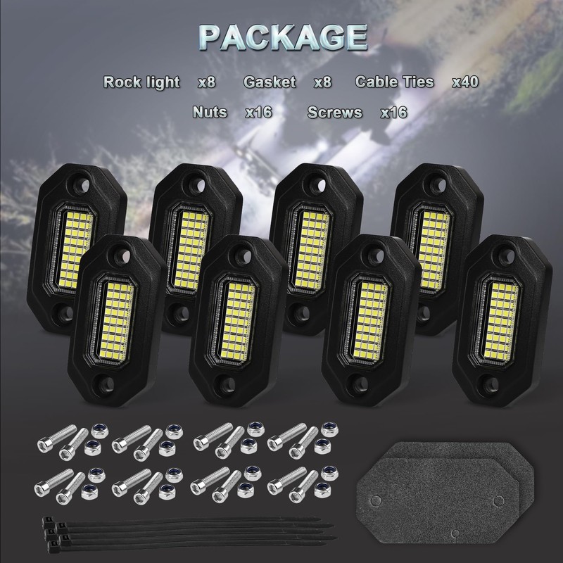 - 【What You Get】8x White rock lights, 8x Gasket, Screw kits. We provide 12 month after-sales service. Any questions, please email us.