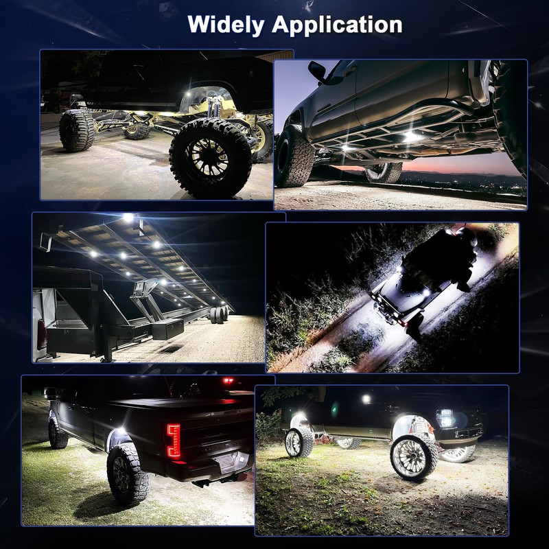 - 【Widely Used 】Rock lights for Trucks Jeep, UTV ATV RZR, vans, off-road, car, motorcycle, boats, etc (12-24V). widely used for rock crawling, engine bays, wheel wells, truck beds, grills, bumpers……,