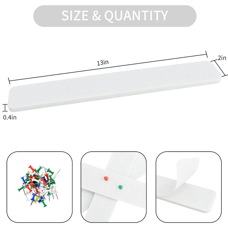 - Appropriate Size:The size of each felt pin board bar strips is 13x1.97x0.47 inches,perfect for the small space where they were needed, helpful for keeping things convenient.