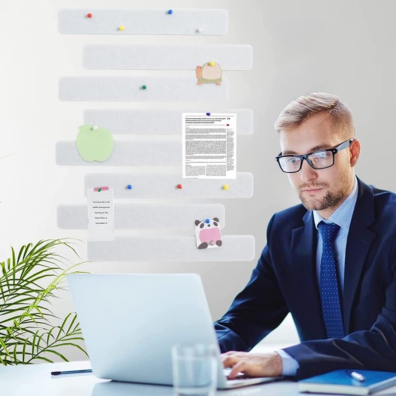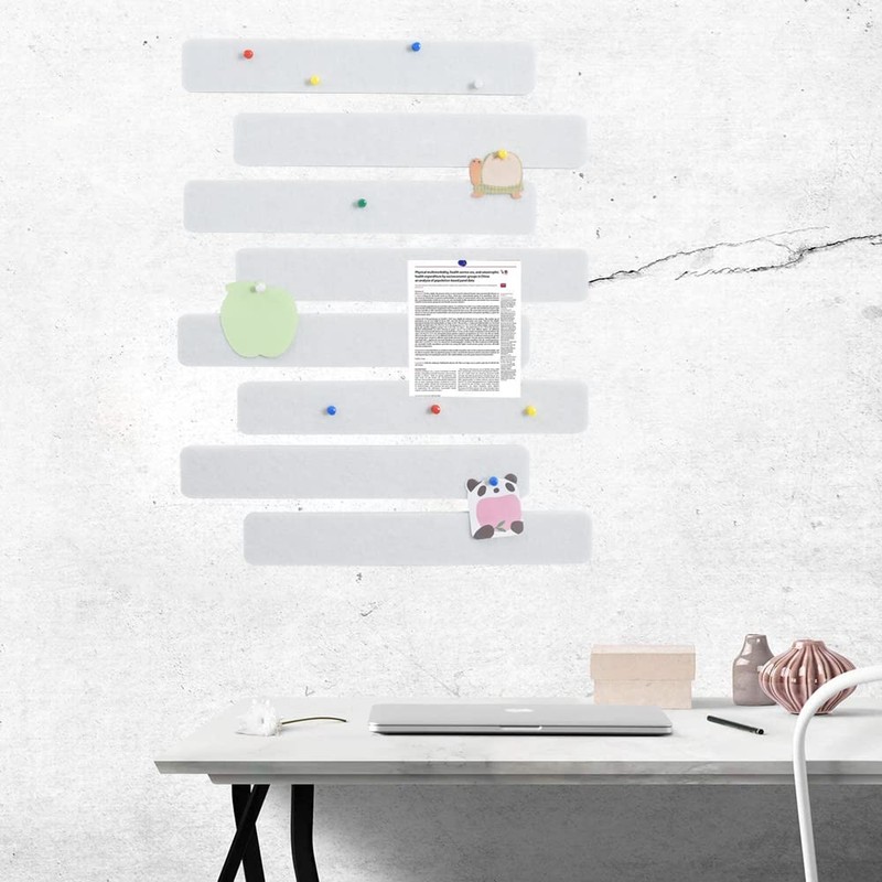 - Package Includes: includes 8 pcs felt pin board bar strips with 35 pushpins in the box. This felt pin board bar strips can be widely applied in offices, homes and school.