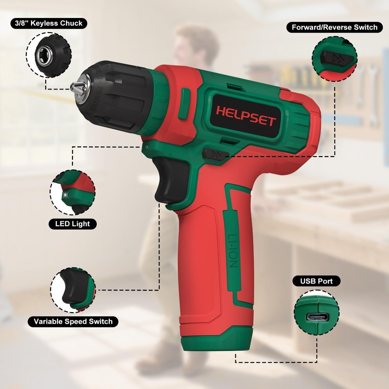 - 3/8" Stepless Adjustment Keyless Chuck: 1-Second Bit Change for Flexibility. Tool-free, one-handed bit changes are done in seconds, and the chuck securely holds various drill bits and screwdriver heads. It flexibly adapts to scenarios from delicate crafts to cabinet installation, boosting operational efficiency.