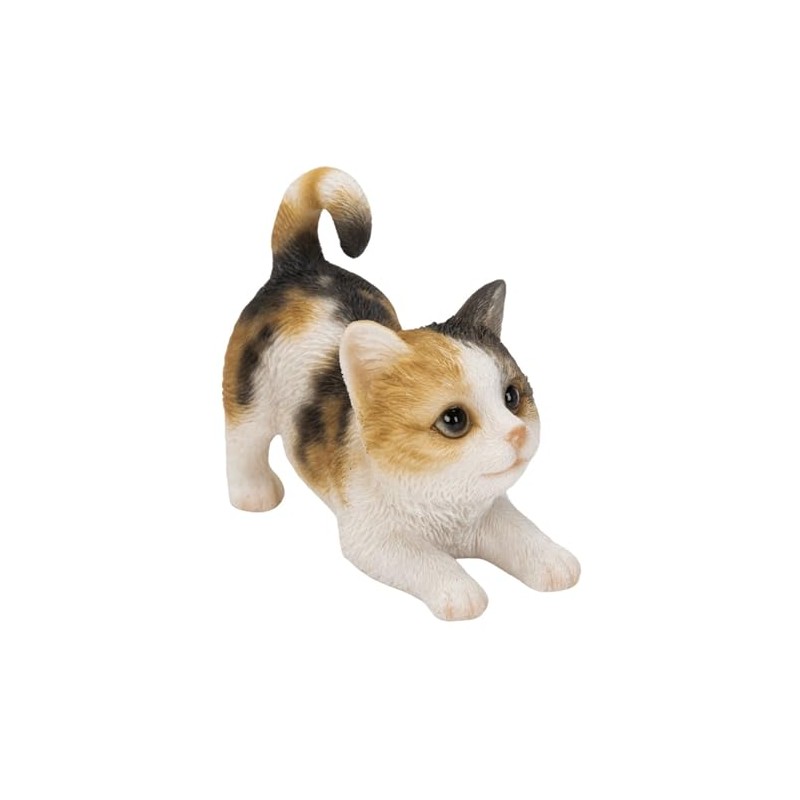 ウービア じゃれる三毛猫(小) 8×4×6.5㎝ 人形 フィギュア 置き物 アニマル 動物 ガーデン 装飾 リアル かわいい ネコ H19159