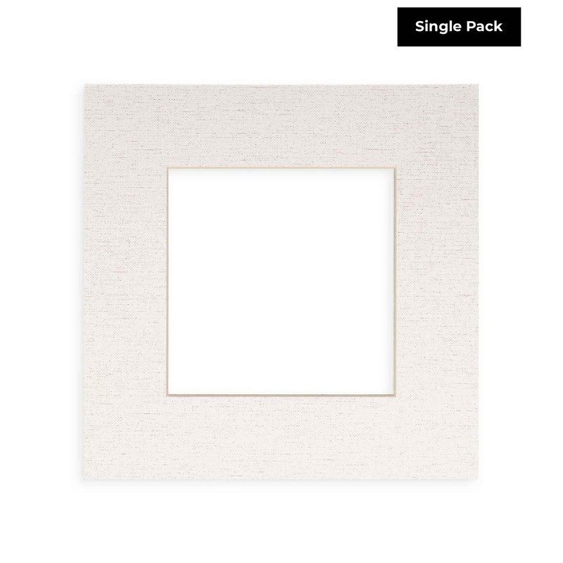 8x8 Mat Bevel Cut for 4x4 Photos - Precut White Linen Canvas Square Shaped Photo Mat Board Opening - Acid Free Matte to Protect Your Pictures - Bevel Cut for Family Photos, Pack of 1 Matboard