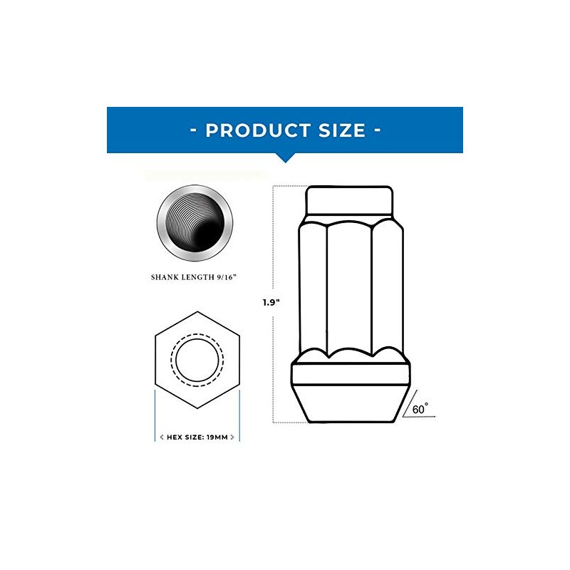 ①Thread Size: Please match your vehicle from above by matching this lug's specs to match both your vehicle and wheel requirements. Or contact our Customer Service Team to verify a safe and proper fitment.