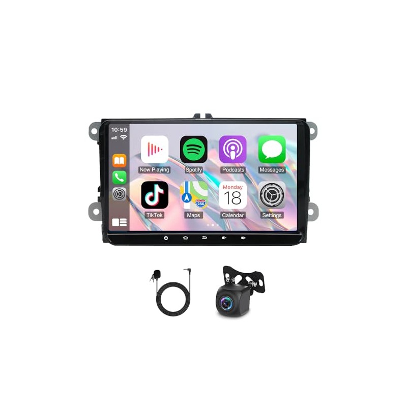 9" Android 13 Double Din Car Stereo Radio with Wireless Carplay Android Auto for VW Caddy 2003-2015 Car Audio Receiver w/WiFi GPS Bluetooth AHD Backup Camera Mic,SWC/FM/AM, 2+32G