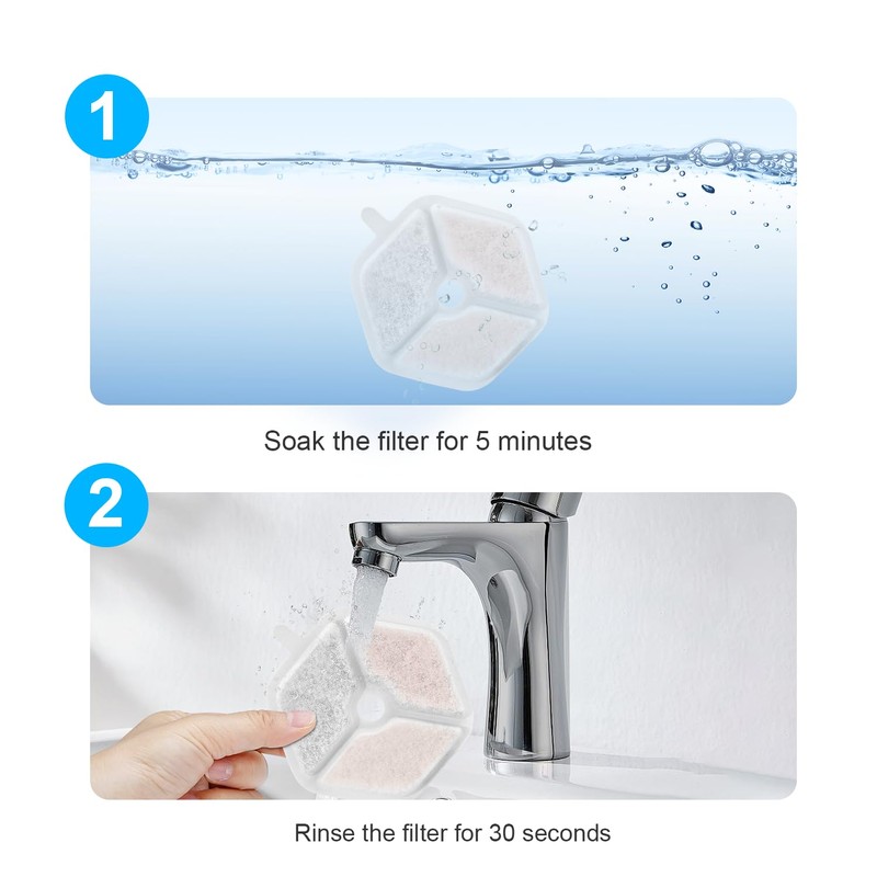 - Reemplazo regular: para la salud del agua potable de tu mascota, recomendamos que los usuarios cambien el filtro de la fuente de agua para mascotas cada 2-4 semanas, dependiendo de la frecuencia del agua potable de tu mascota también.