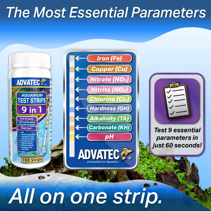 - 💧FOR FRESHWATER AND SALTWATER💧 Advatec 9 in 1 Test Strips can be used to test Fresh and Saltwater aquariums, Tanks, Fishbowls, as well as Ponds.