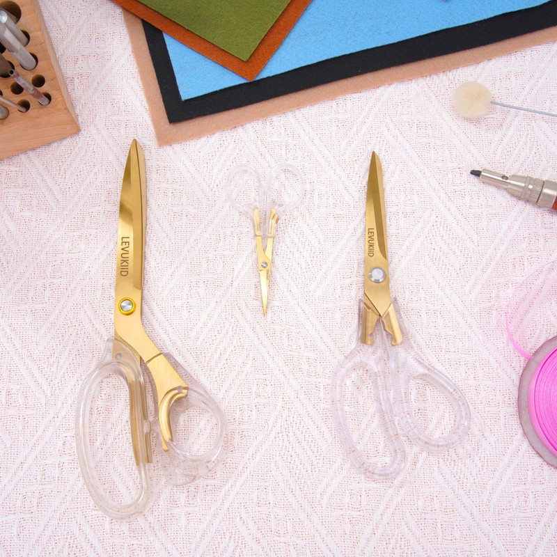 These 9-inch fabric shears feature crystal-clear resin handles that blend style with durability. Contoured grips minimize fatigue during extended use.