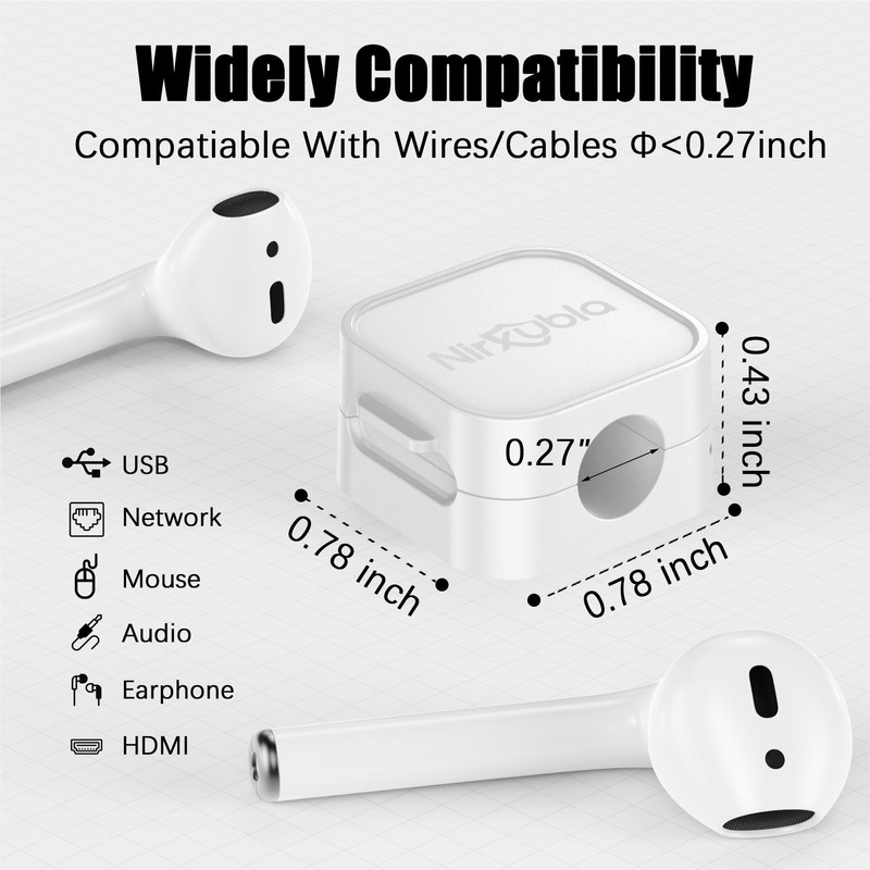 - [7.0 mm Diameter Cable Slot] Diameter of 0.28 inches (7.0mm) can hold most cables, such as mobile phone charging cables, earphone cables, video adapter cables, laptop charging cables, and some home appliance cables,etc. Besides that, the slot diameter of 0.28 inches (7.0mm) can perfectly hold charging head as small as the iPhone original silicone charging cable without falling off, and the held cable can be pulled out smoothly for use