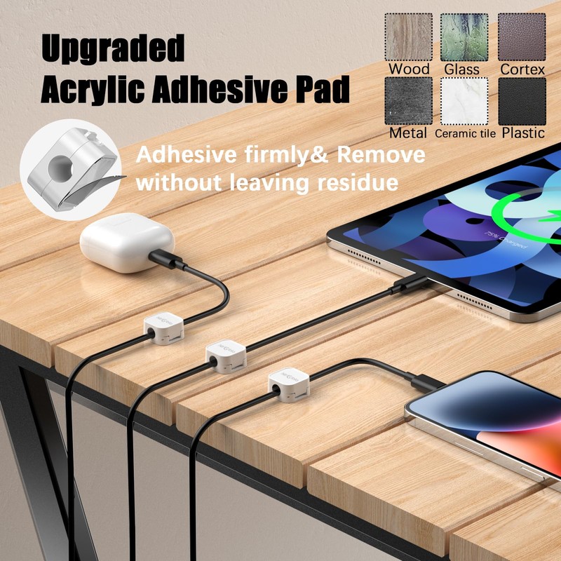 - [Enhanced No-Residue Acrylic Adhesive] Residue-free is the main reason we use acrylic adhesives, as when you remove a cable management clip, the acrylic adhesive will not leave any marks on your paste. At the same time, you can paste on the surface of various materials, including wooden furniture, glass, tiles, etc.Kindly note please clean the desired surface without dust before sticking, and keep pressing for 30 seconds to enhance the adhesion of the sticky pad. Highly recommend waiting for 12-24 hours for better use