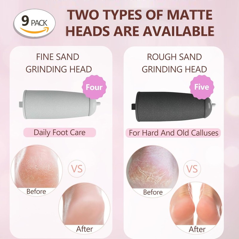 - Electric Foot File Head Refills - includes 4 Regular and 5 Extra Coarse roller heads, Extra coarse Remove thicker, hard more effectively and quickly, regular coarse for daily maintenance. Can washable for repeated use.