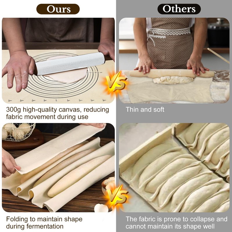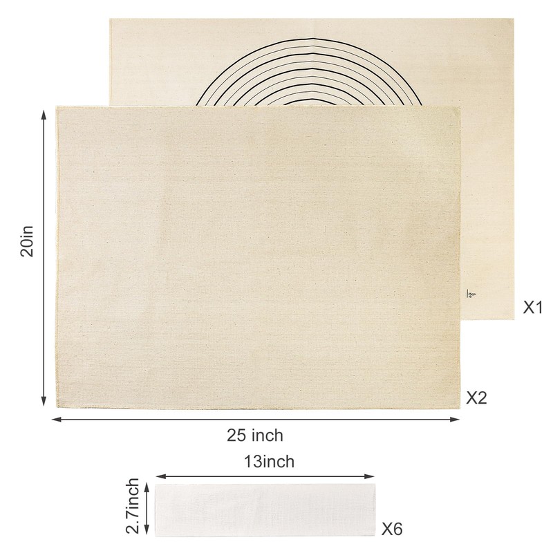 - Cotton Canvas Leavening Cloth: The rolling pin cloth measures 25 X 20 Inch and is large enough for your dough. We use heavy duty cotton canvas, it is not easy to move and stack during the dough kneading process, which greatly improves the production efficiency and is an ideal tool for baking.
