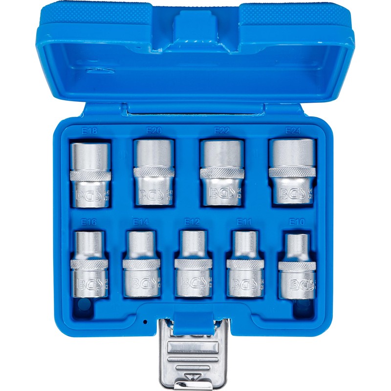 9-piece E-Type Sockets Set, E10-E24, 1/2'