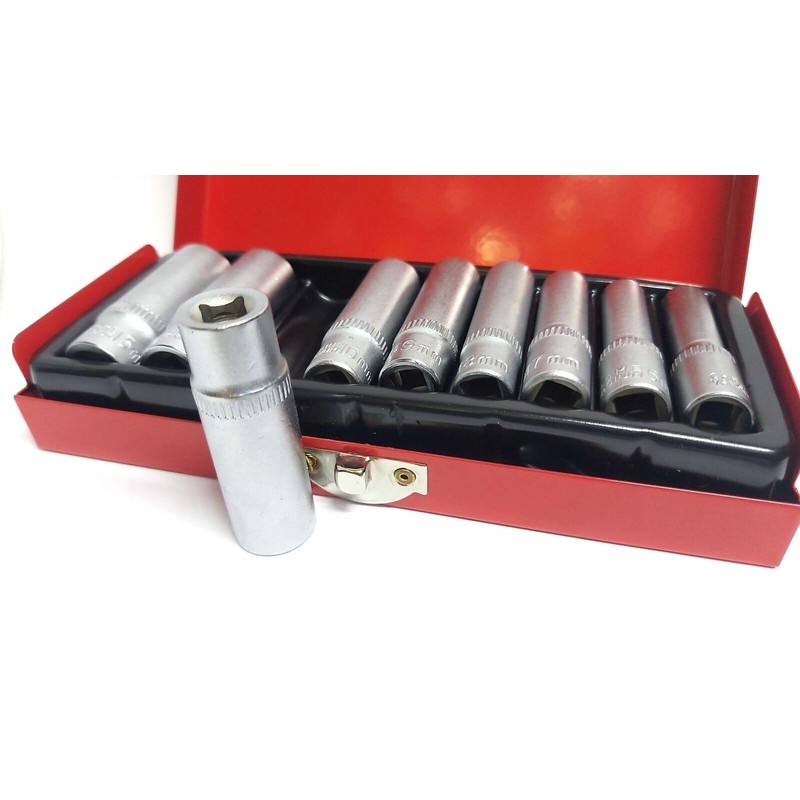 9 Piece Socket Set Long 1/4" Chrome Vanadium 5mm to 13mm
