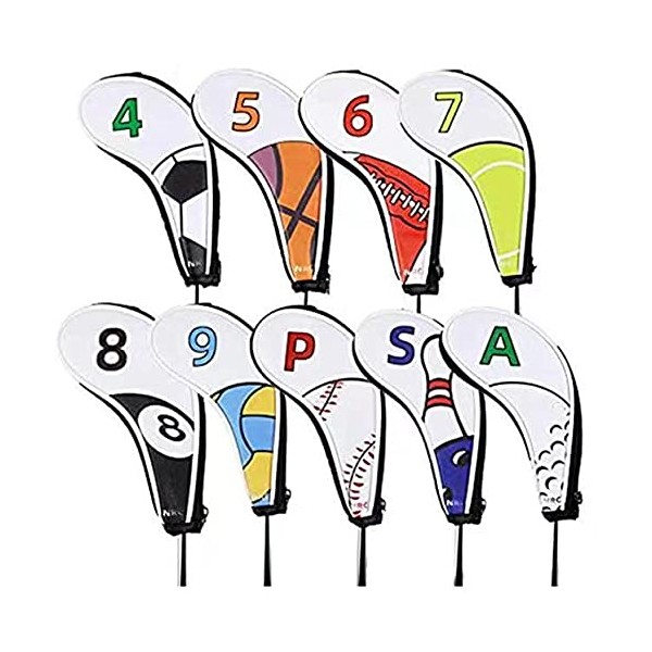 9 Piece Sports Head Cover Iron Covers with Counts Zipper