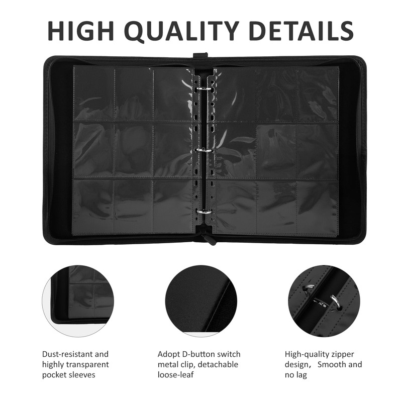 - 【Premium PU & Water-Resistant】The binder for trading cards is made from high-quality PU leather, which is prevents water or rain from seeping through. It is durable, with a soft exterior layer that is waterproof and wear-resistant, ensuring that your cards won't wrinkle, fade, or get stained. The 9-pocket card binder is perfectly sized for both children and adults to carry around easily.