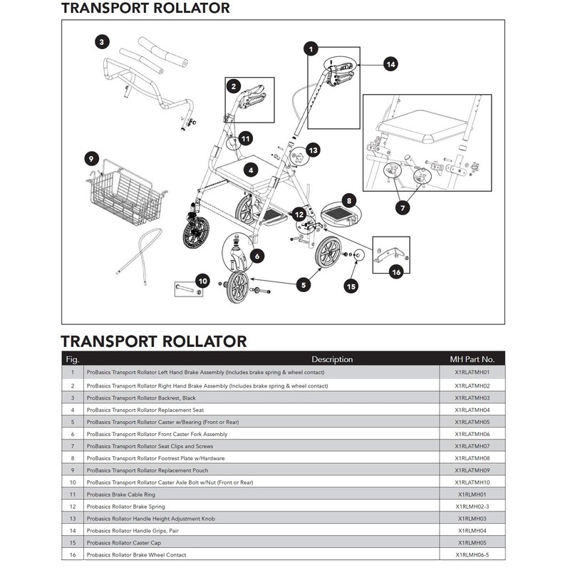 - Replacement Tote/Pouch For ProBasics Transport Rollator Model RLAT