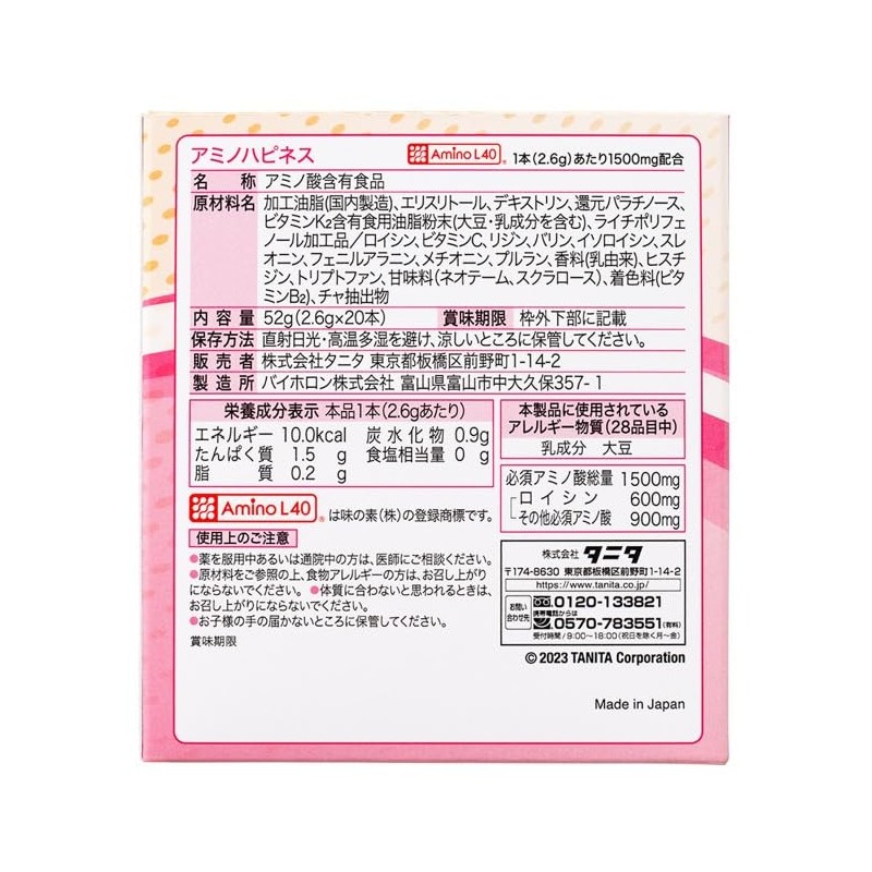 タニタ アミノ酸 【9種の必須アミノ酸(味の素(株)特許技術)をすべて配合】タニタの管理栄養士推奨 タンパク質 ミックスフルーツ味 個包装 アミノハピネス〈Web限定商品〉