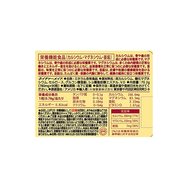 大塚製薬 ネイチャーメイド カルシウム・マグネシウム・亜鉛 90粒 30日分