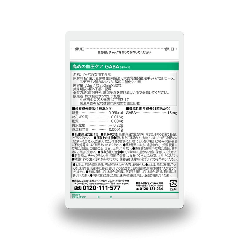 本品にはGABAが含まれます。GABAには高めの血圧を下げる機能があることが報告されています。血圧が高めの方に適しています。