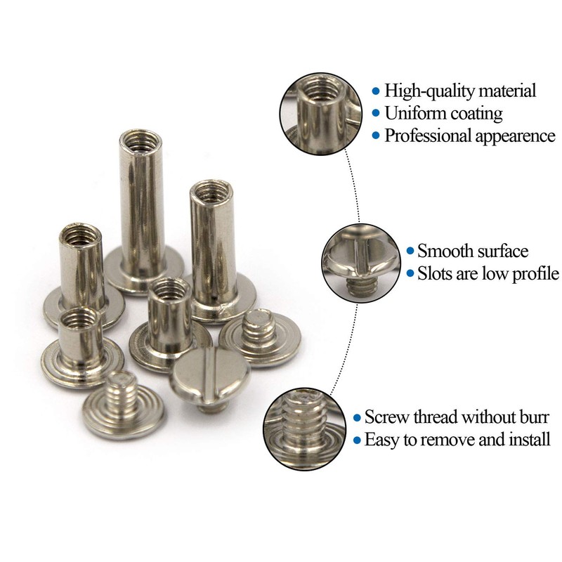 • Durable and easy to bind:The finish on these Chicago buttons are very nice for being ran off as high production items. The finish is smooth with fine outline, the screw heads has no burr, the slots are low profile, can be easy to remove and install. You can add or subtract as much paper as you like.