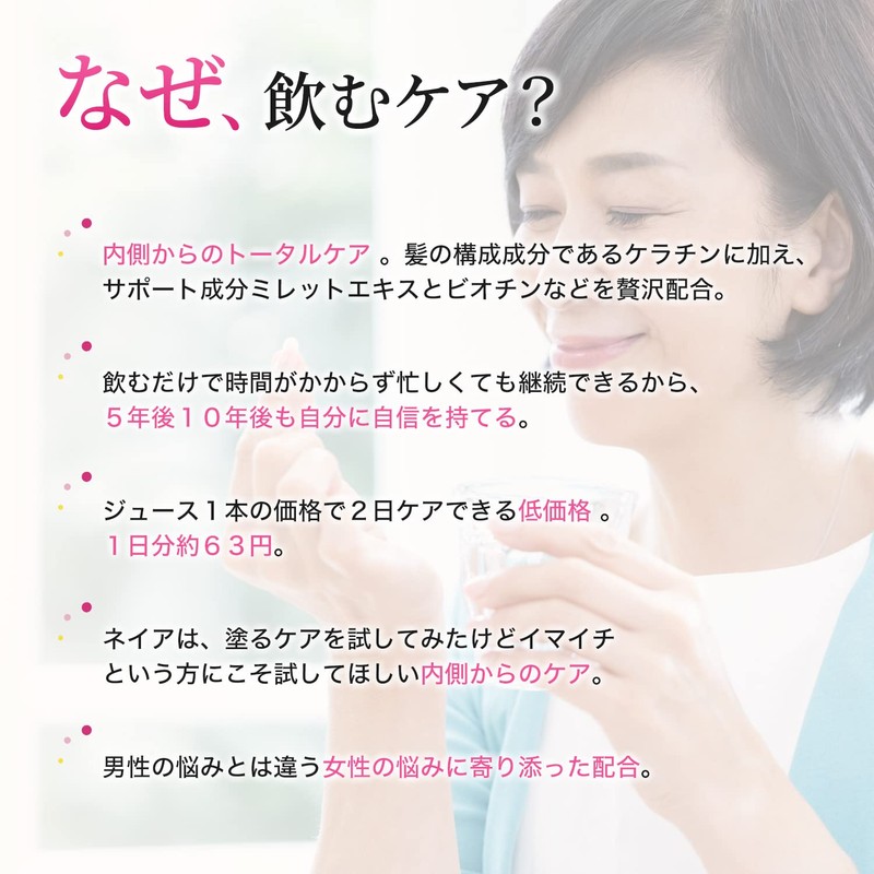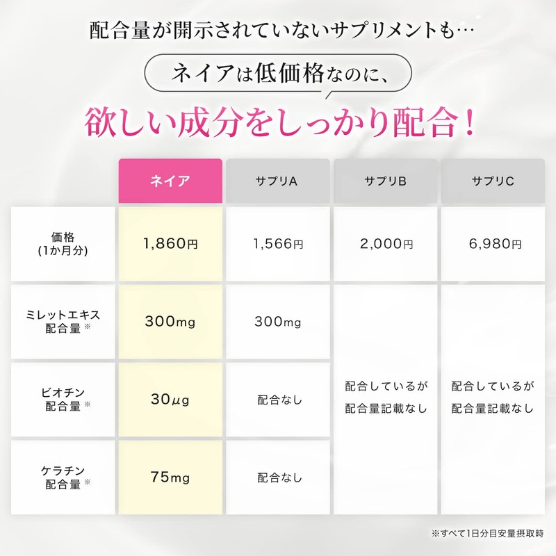 ビオチン ケラチン ミレットエキス 9000mg 管理栄養士監修 ヘアケア サプリメント 女性用 【ボリューム不足が気になる方に!】 ネイア 30日分 国産 GMP認定工場