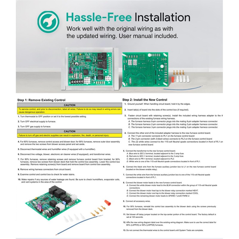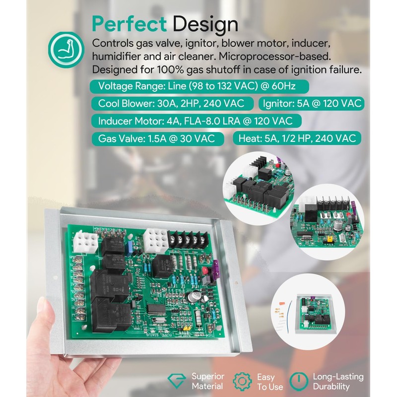• 【Control Board Upgrade】 Feature all OEM functions. Use as an exact replacement for the original Furnace circuit board. Control gas valve, inducer draft motor, circulating blower and hot surface ignitor. Monitors timing, trial for ignition, flame sensing, lockout, plus pressure, rollout and limit switches. Designed for 100% gas shutoff in case of ignition failure. Twinning compatible with other ICM282A boards. Compatible with 24 VAC standard thermostat.