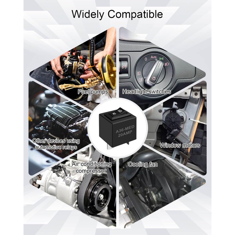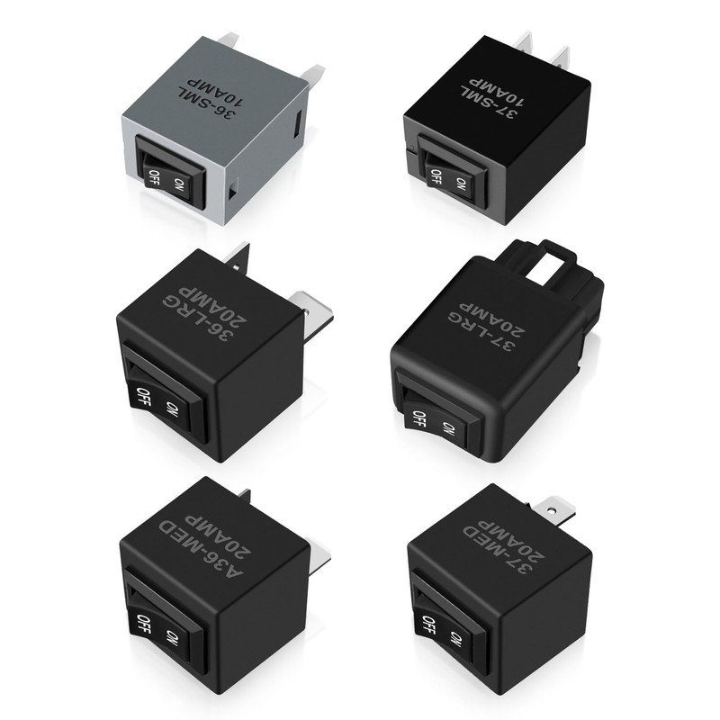 - Widely Compatible: Relay bypass switch kit fits for most domestic, Japanese, Korean, and German fuel pumps, headlight switches, window motors, cooling fan, air conditioning compressor and other devices using automotive relays. Replace 37-SML/10AMP 37-MED/20AMP 37-LRG/20AMP 36-SML/10AMP 36-LRG/20AMP 36-MED/20AMP