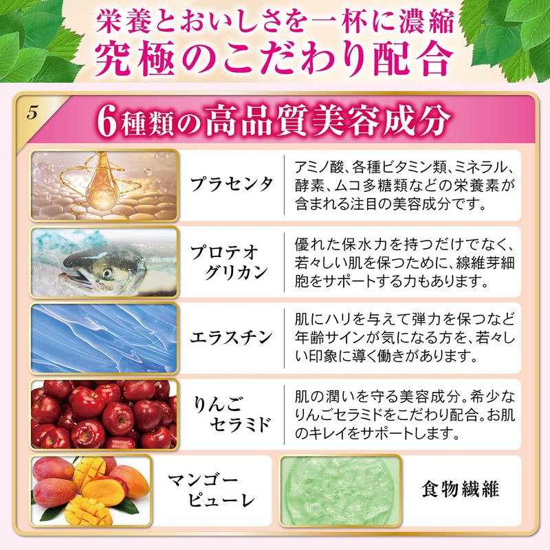 - ✅【たっぷりの美容成分】6種類の美容成分を配合!「栄養」と「美容」と「おいしさ」をこの1杯に濃縮。